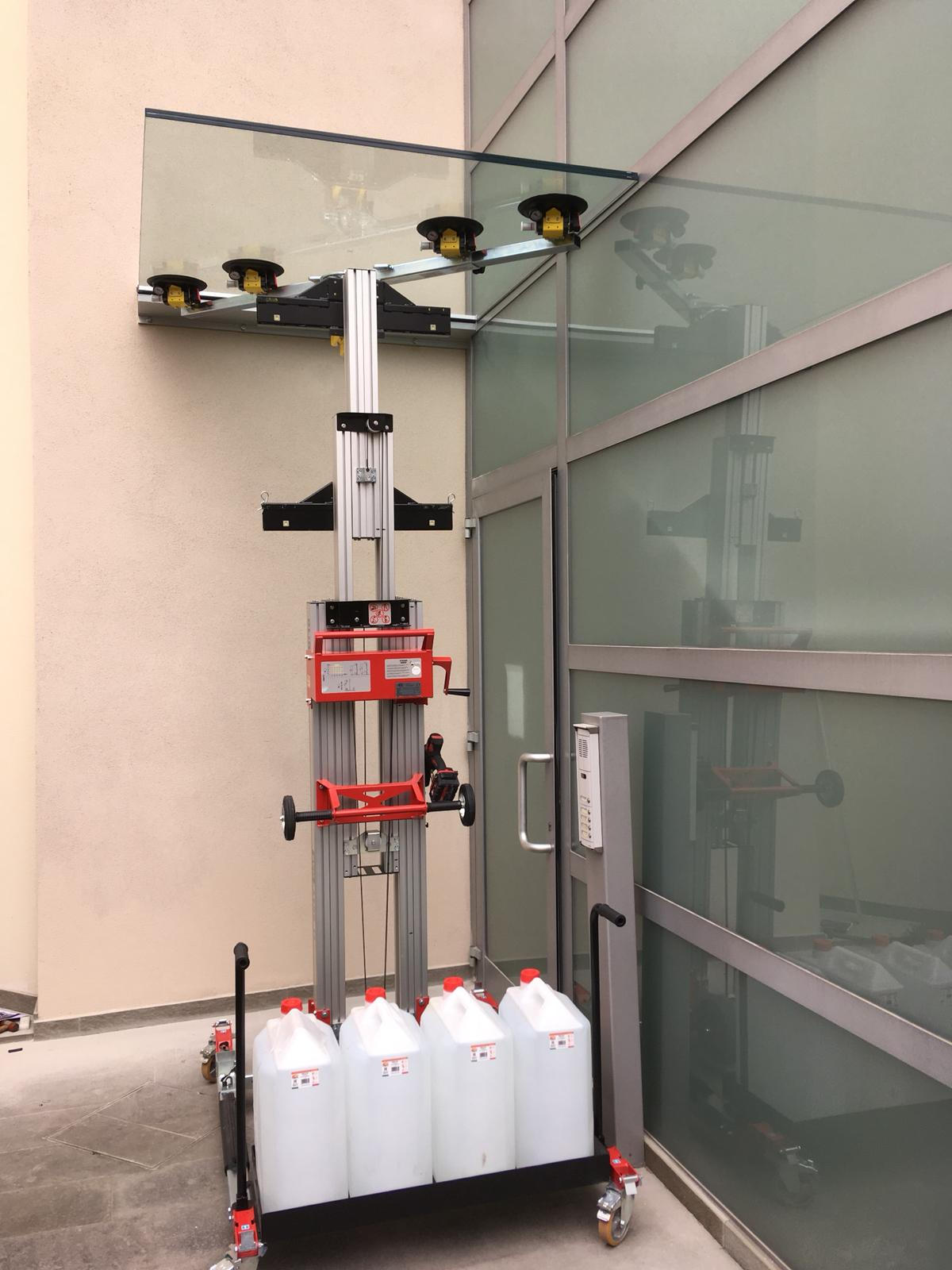 Dodatkowo, małe wymiary wózka po złożeniu umożliwiają transport nawet autem osobowym. Opatentowany system pozwala na podnoszenie i opuszczanie ręczne lub za pomocą dowolnej wkrętarki. Wózki nie podlegają pod UDT. Wbudowane dwa systemy bezpieczeństwa zapewniają komfortową pracę.